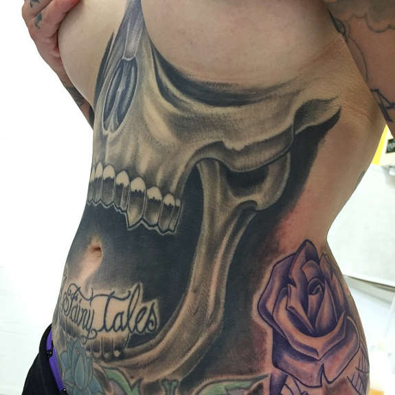 Cyril from Art Corps Tattoo. Sublime stomach tattoo piece of a women.